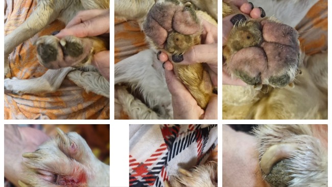 Sunie po badania krwi. Dodatkowo lekarz analizował,co jeszcze możemy zrobić, żeby doleczyć łapy Goni to ciemniejsza sunia). Obie dostały antybiotyki ze względu na stan zapalny, wymaz ze zmian ropnych między palcami poszedł na badania, sterylkę musimy odłożyć aż podleczymy łapy i stan zapalny, ale jest szansa na laserowe leczenie zmian na łapach jak tylko opanujemy ich stan. Obie muszą nabrać trochę masy mięśniowej, ale tu już działamy z dietą i spacerami.
