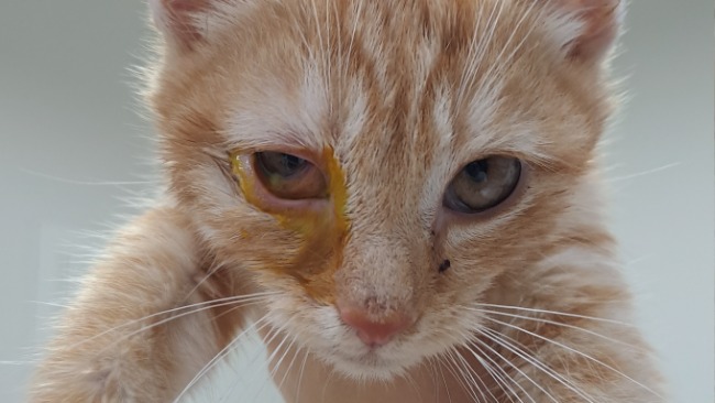 U Treflika rozwinęła się silna infekcja herpeswirusa oraz chlamydii. Ucierpiały głównie jego oczka, choć przez długi czas był też zakatarzony. Konsultowałyśmy jego sprawę z czterema lekarzami, w tym ze specjalistą- okulistką.