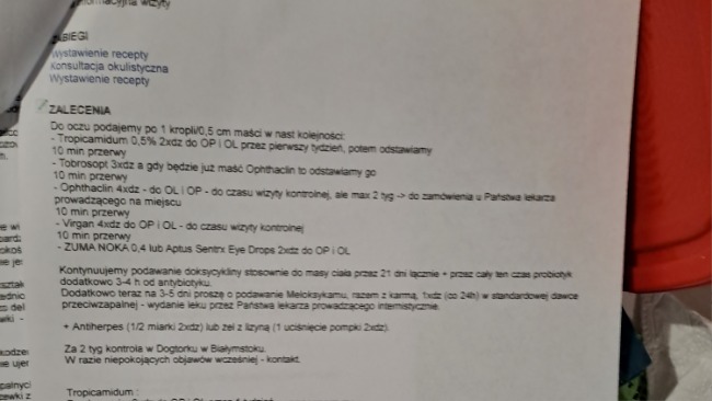 Przez ponad tydzień miło zmiany kropli według zaleceń, z oczkami było tylko gorzej. Dlatego udałyśmy się na wizytę specjalistyczną do okulisty.
