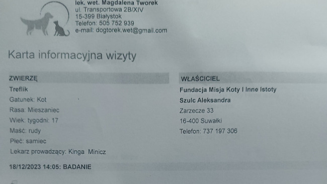Zwracamy się do Was z prośbą o pomoc w opłaceniu leczenia Treflika. Nasza Fundacja działa tylko dzięki wspaniałym darczyńcom.