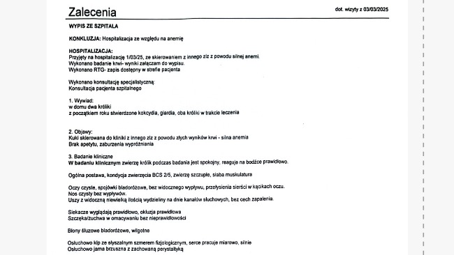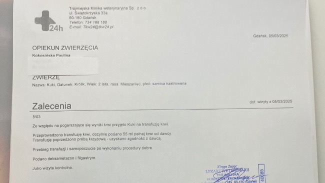 I w tym momencie Cookie, która zawsze była zdrowa, silna i szczęśliwa zaczęła nam gasnąć. Przestała kicać, jeść, pić. Okazało się, że jest to bardzo poważna anemia. Niestety jest na tyle krytyczna, że królik potrzebował natychmiastowej hospitalizacji (na czas nieokreślony) i jak najszybszej transfuzji krwi. Potrzebujemy też wielu szczegółowych badań aby dowiedzieć się skąd wzięła się anemia. Bardzo chcemy walczyć o jej życie i zrobić wszystko co możemy żeby ją uratować ale kwoty za hospitalizację i całe leczenie są ogromne i po wszystkim co już przeszliśmy przestaliśmy dawać radę.