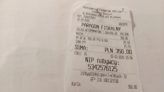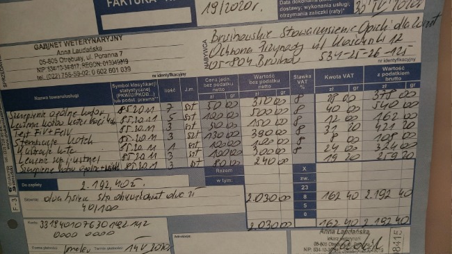 5) Oprócz tego załączamy fakturę za leczenie kotów w tym była kotka Mila operowana bo miała stan rakowy na uszach. Teraz ma się dobrze.