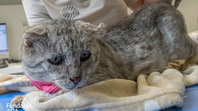 Jego ciało to mapa cierpienia. Kolejne badania ukazują kolejne przykre diagnozy. Pozytywny test na FIV. Wirus nabytego niedoboru immunologicznego kotów, osłabia jego organizm i sprawia, że każda infekcja to poważne zagrożenie.