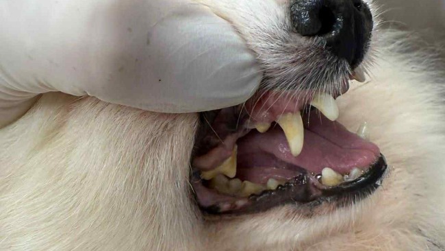 Zły stan jamy ustnej. Wymaga zabiegu sanacji, ponieważ nagromadzony kamień i stan zapalny dziąseł mogą dodatkowo osłabiać cały organizm i pogarszać jej samopoczucie.