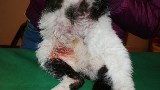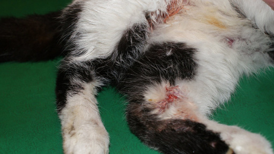 Dnia 15 marca na drodze Słomniki - Proszowice na oczach naszej wolontariuszki został potrącony kocurek. Sprawca zdarzenia oczywiście pojechał spokojnie dalej, a kocina została zgarnięta z drogi przez ową wolontariuszkę i zawieziona do lecznicy. Przeprowadzone badanie i zdjęcia RTG pokazały złamaną miednicę, prawą kość biodrową rozklejoną z kością krzyżową, rozklejone spojenie łonowe, lewą kość kulszową złamaną od kości biodrowej, złamanie paliczka w przedniej prawej łapie, przemieszczenie pierwszego kręgu ogona z kością krzyżową, rana na prawej tylnej łapie wymagająca szycia, lewa pachwina - rana, otarcie na biodrze. Do tego wielki rozległy krwiak w obrębie brzucha, rana na dziąśle i brak zębów pomiędzy dolnymi kłami. Jednym słowem masakra :(