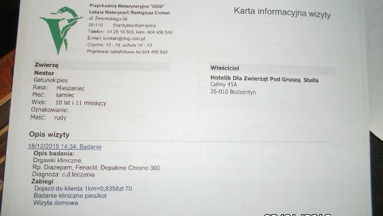 Największym problemem są jednak pieniądze. Nestor przebywa obecnie w Hotelu dla zwierząt Pod Gruszą w Bodzentynie (woj. świętokrzyskie).