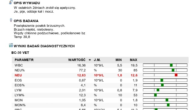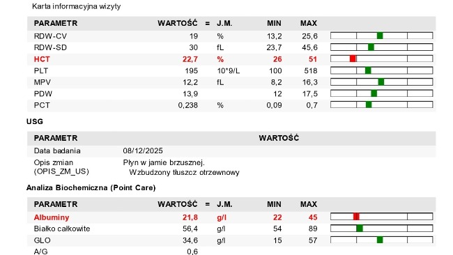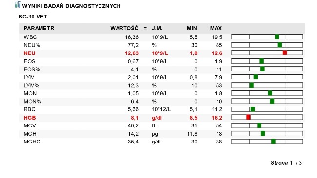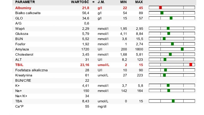 Diagnoza była niemal natychmiastowa, wystarczyło przyłożenie sondy USG by odkryć, że cały koci brzuszek wypełniony jest płynem. Pobrany płyn był gęsty i cytrynowy, typowo fipowy. A wyniki badań krwi, które niedługo potem spłynęły z laboratorium, jednoznacznie potwierdziły podejrzenia lekarza i nasze…