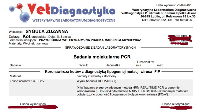 Jesteśmy po badaniach kontrolnych okolic dnia 30. kuracji i Doja przechodzi przez kurację niczym terminator! Wątroba, nerki, trzustka super, witamina B12 wróciła do normy, morfologia w normie. Klinicznie wróciła do nas stara, dobra Doja, bawi się, ma apetyt, przytyła z powrotem do swojej standardowej wagi, czyli 3,5 kg. Dzięki Waszym wpłatom jesteśmy zabezpieczeni na kolejny miesiąc, nawet pomimo wysokiej dawki, którą Doja bierze (12 mg/kg mc); jesteśmy niezmiernie wzruszeni, że tyle osób zaangażowało się w pomoc naszemu głuptaskowi - niezmiennie za każdą wpłatę, ciepłe słowo, udostępnienie - DZIĘKUJEMY!