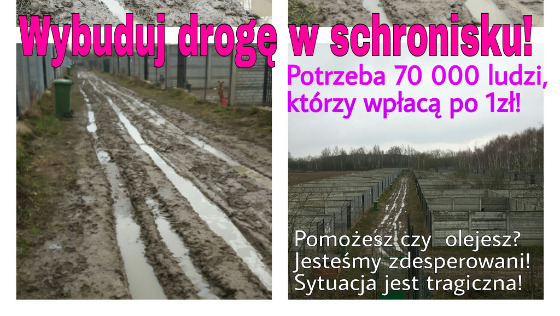 Pomagajmy. Nie wystarczy LUBIC. Z lubienia zwierzeta nie wyzyja. Lubicie a 1 zl nie na pomoc nie ma? Prosze lubic i poprzec lubienie conajmniej 1 zl. Jezeli ktos lubiacy nie ma 1 zl to prosze zwrocic sie do mnie. Pozycze :-) /dam. Bardzo prosze pomagajmy .