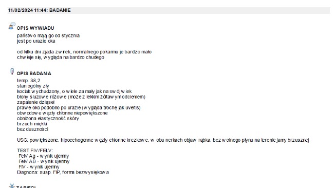 Obecnie niestety jest to zakaźne zapalenie otrzewnej o charakterze neurologicznym. Miszka ledwo porusza łapkami, karmimy go strzykawką. Jego stan jest ciężki, ale rokuje bardzo dobrze przy odpowiednim leczeniu.