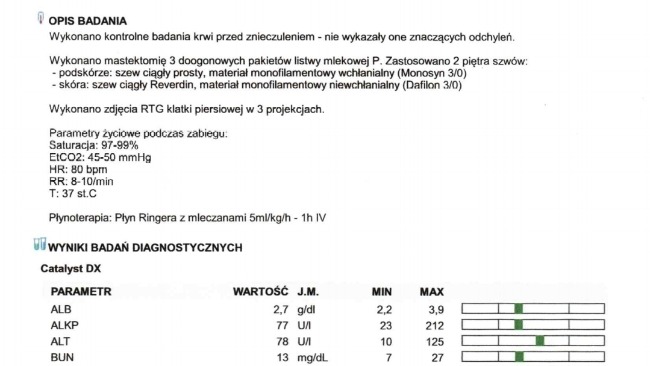 Historia Dziuni, nie jest chyba typową. Psina miała swój dom przez 11 lat, od szczeniaka miała rodzinę, ale gdy rodzina się rozpadła zabrakło odpowiedzialnych osób, które powinny się nią zająć. Została więc oddana do schroniska jak zbędny balast, nigdy więcej "rodzina" o nią nie zapytała. Dziunia płakała dniami i nocami, aż straciła głos ale nawet wtedy próbowała wołać swoich ludzi. Siedziała smętnie w kojcu odmawiając jedzenia, jedyne czego chciała to głaskania i przytulania. Tylko wtedy się uspokajała. Historia tego psa poruszyła wiele serc. Odnaleźli ją cudowni ludzie, którzy wiedzieli już, że oddadzą jej serce, ciepły kąt i miłość. Dziunia pojechała ze swoją nową rodziną, ale sielanka nie trwała długo. Okazało się, że ma guzy listwy mlecznej i jest potrzebna operacja. Badania histopatologii niestety wykazały, że nowotwór jest również po drugiej stronie i potrzebna jest druga operacja. Nie chcieliśmy zostawiać nowych opiekunów z takim obciążeniem finansowym i postanowiliśmy, że pomożemy w opłaceniu faktury za operację. Jesteśmy stowarzyszeniem wolontariackim, pomagamy dzięki hojności i dobroci serca ludzi. Zwracamy się do osób, którym dobro zwierząt leży na sercu, by wpłacili choćby grosik i pomogli nam pokryć koszty faktury, byśmy mogli dalej pomagać innym potrzebującym zwierzętom. Pomóżmy Dziuni cieszyć się jeszcze życiem bo tak naprawdę dopiero teraz się ono zaczęło. Nie podołamy finansowo bez Waszej pomocy, nie uratujemy życia bez Waszej pomocy. Czy da się wycenić szczęście? Czy da się wycenić życie? To nie wina psiny, że ktoś wcześniej ją zaniedbał, ale ona ponosi tego konsekwencje. Pomożecie?