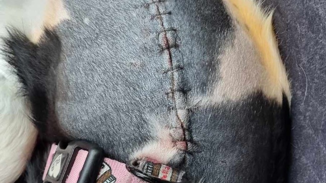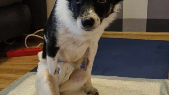 Nic nie zapowiadało takiego dramatu-dzień wcześniej rano zaczęla utykać na łapkę.To młoda ,mała wycofana sunią.Uratowana 5 lat wstecz że stogu razem z rodzeństwem.