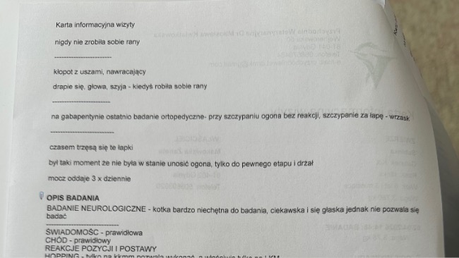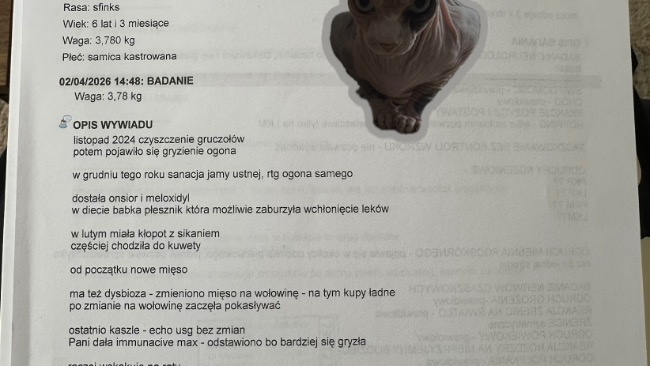 Odwiedziłyśmy masę lekarzy, konsultowaliśmy się z behawiorystami, dietetykami, oraz lekarzami którzy zajmują się leczeniem zaburzeń psychicznych u Kotów. Ostatnia wizyta u neurologa zakończyła się skierowaniem na badanie, na które mnie już po prostu nie stać. Od blisko sześciu miesięcy wydaję pieniądze na przeróżnych specjalistów i nikt nie potrafi nam pomóc. W tym badaniu możliwe, że potwierdzimy czy Sabinka wymaga operacji amputacji ogona. Sabinka od kilku dni jest również na lekach psychotropowych, jak na razie bez żadnej poprawy. Chciałabym, żeby moja koteczka mogła wieść spokojne i dobre życie. A że jest dla mnie jak dziecko, (bo mam tylko ją) naprawdę próbuję wszystkiego. Jestem osobą samotną, która również wymaga stałych konsultacji lekarskich ze względu na dwa guzy w głowie. Podejrzewają nowotwór centralnego układu nerwowego. Bardzo proszę wszystkich którym los Sabinki nie jest obojętny o wsparcie. Liczę że w Internecie jest taka siła i w końcu uda nam się przynajmniej ją wyprowadzić na prostą.