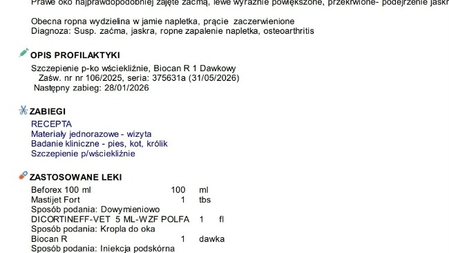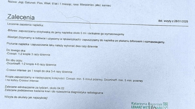 Od razu zaaplikowano antybiotyk i leki na oczy, już zapisałyśmy go do ortopedy i okulisty. Jesteśmy w trakcie dalszej diagnostyki i czekamy, co jeszcze może wyjść.