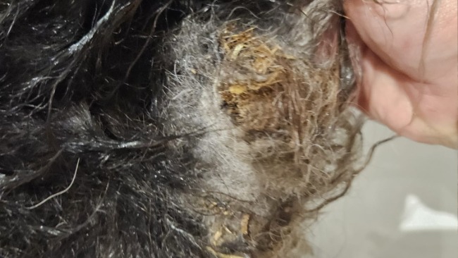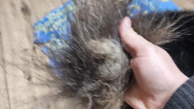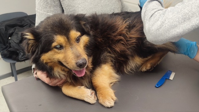 I kiedy pies pojawił się ponownie, pomimo, że jestem osobą prywatną, która ma już pod opieką kilka bezdomniaków, nie mogłam na to pozwolić. Dlatego wraz z koleżanką wskoczyłyśmy w samochód pognałyśmy po to stworzenie. Kiedy tylko miałyśmy go w samochodzie od razu zawiozłyśmy go do weterynarza.