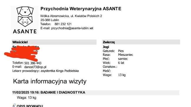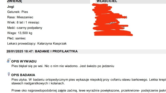 Podczas wizyty u okulisty okazało się, że serduszko Jogiego nie pracuje prawidłowo, dlatego umawiamy go do kardiologa, gdyż niezbędne jest wykonanie echo serca.