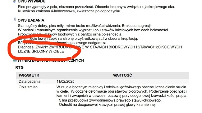 Ostatnie wizyty u specjalistów kompletnie mnie rozwaliły. U ortopedy prześwietlenia wykazały silne zmiany zwyrodnieniowe prawie wszystkich stawów, w tym te niezwykłe bolesne w bioderkach oraz zwichnięcie rzepki. Dlatego Jogi ma takie problemy z chodzeniem.