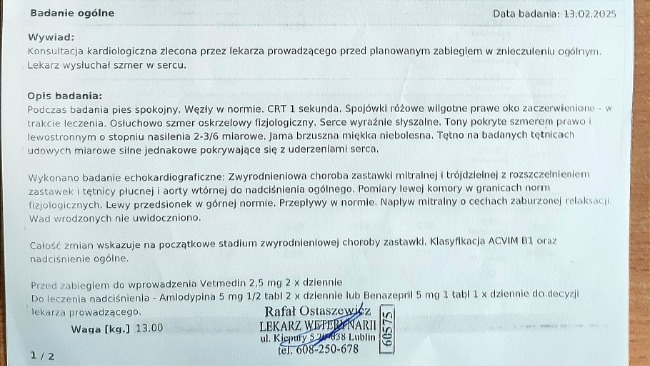 Byliśmy również u kardiologa i niestety serduszko też jest do leczenia.