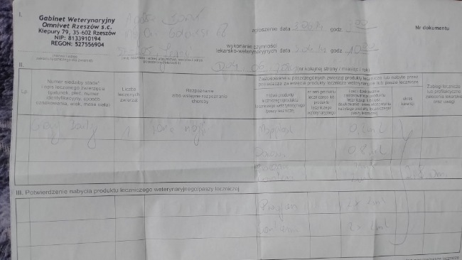 Weterynarz zrobił, co mógł, a koszt wizyty wyniósł 660 zł. Zamówiliśmy również potrzebne leki za 500 zł. Wiemy już, że czeka nas długa i kosztowna droga do pełnego wyzdrowienia Gray Beauty.