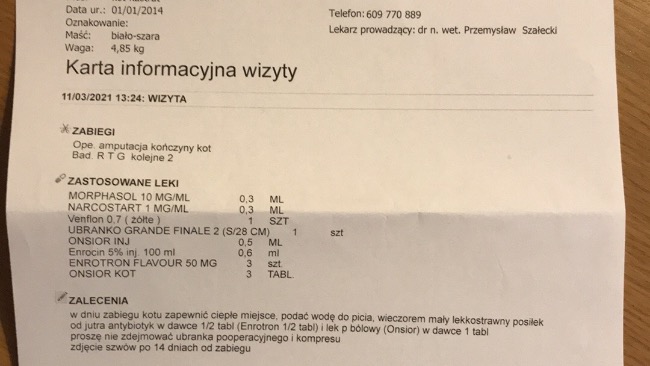 Będzie to dla Niego bardzo ważny dzień, bo dowiemy się co będzie dalej z jego uszkodzoną łapką.