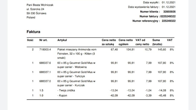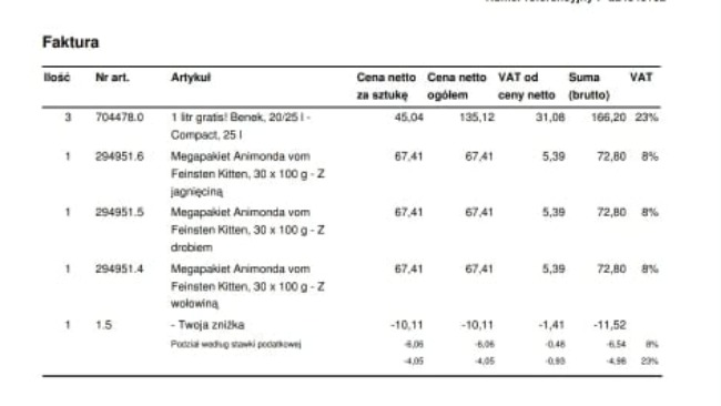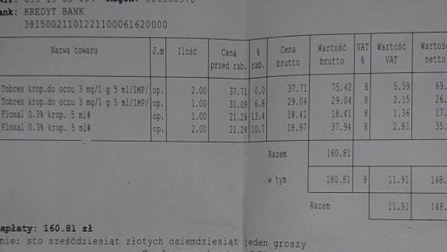 Poniżej zamieszczam zdjęcia faktur ,zakupionych kropli do oczu oraz karmy i żwirku dla przedszkolaczków z Ekipy FeLv+.