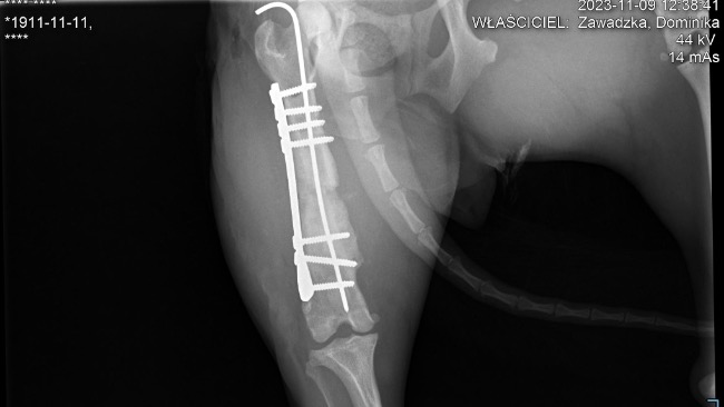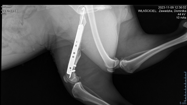 Zabieg się udał, teraz staje na rzęsach, żeby przyprawić mnie o zawał próbując brykać pomimo zakazu lekarza!Po 6/8 tygodniach zostaną usunięte druty i ta młoda, radosna dziewczyna będzie mogła ruszać w świat!