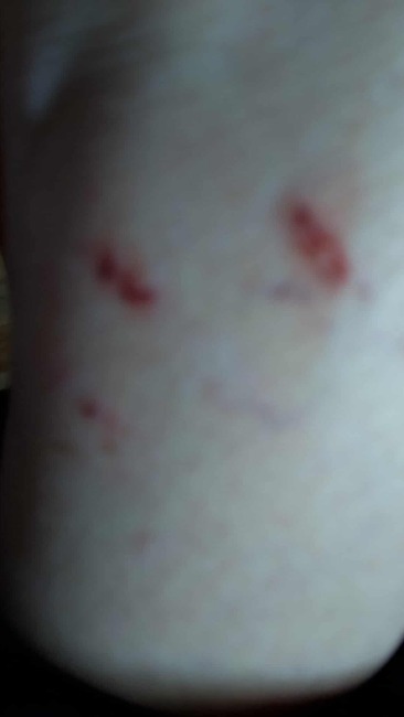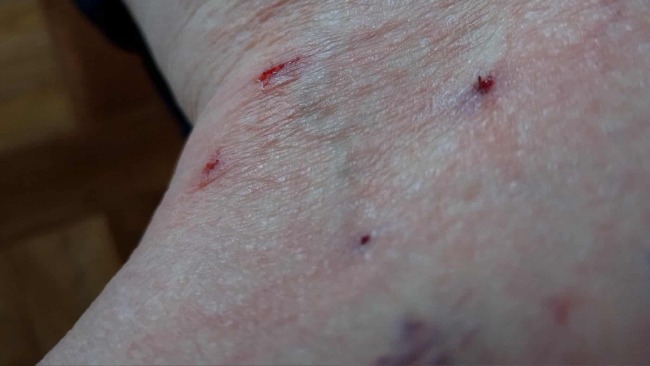 Jego "agresja" a raczej raz na parę dni wgryzanie się w nogi (i czasem ręce) jego opiekunki tymczasowej, p. Ani