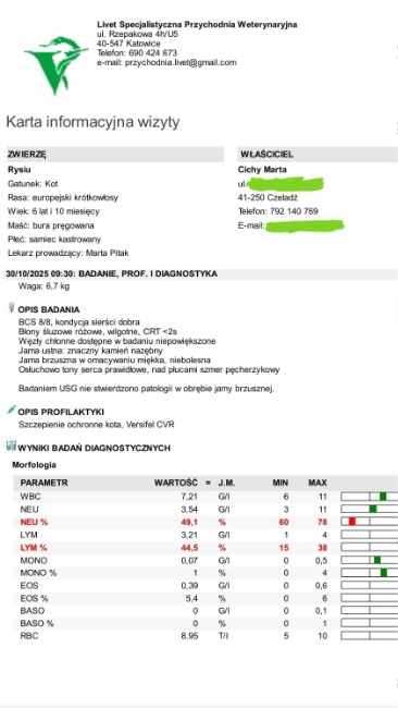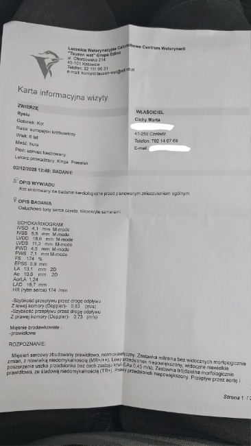 Rysiu pojawił się dzięki mobilnemu pomocnikowi ❤ dzisiaj zgodnie z planem na umówionej wizycie u kardiologa w celu upewnienia się, że jego serduszko pracuje jak powinno i że można go bezpiecznie poddać znieczuleniu ogólnemu za tydzień (zabieg 🦷 na który, nawiasem mówiąc nie ma jeszcze potrzebnej kwoty 😔).