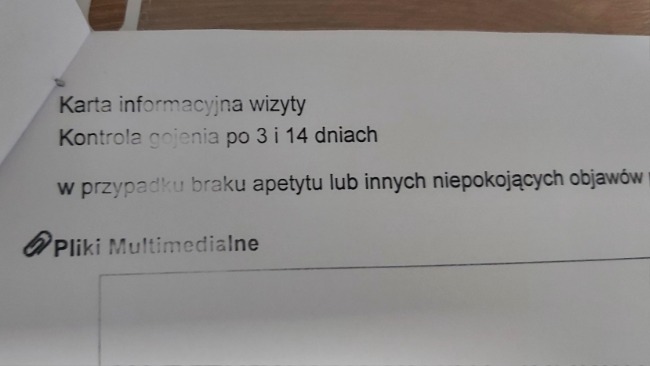ma pojawić się na pierwszej kontroli gojenia w piątek 12.12 o godzinie 11:00 (szukamy na to wydarzenie już teraz 🚗 pomocnika)