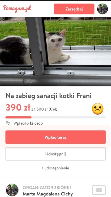 Ale generalnie byłoby super gdyby kolejne wpłaty szły już bezpośrednio na zbiórkę Frani, co by wszystko było jasne i przejrzyste 🐾