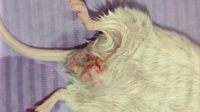 Samce myszy zostały od razu rozdzielone - jeden samczyk ma już poważne pogryzienia, w skutek których stworzył się u niego ropień i w trybie cito musiał przejść zabieg oczyszczania.