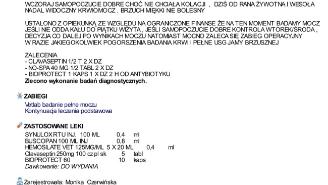 Proszę o pomoc gdyż wiem że sama nie jestem w stanie pomóc mojej Fifi. Jest ona dla mnie bardzo ważna a ma jeszcze trochę życia przed sobą. Oczywiście dodaję ostatnie badania mojej Fifi.