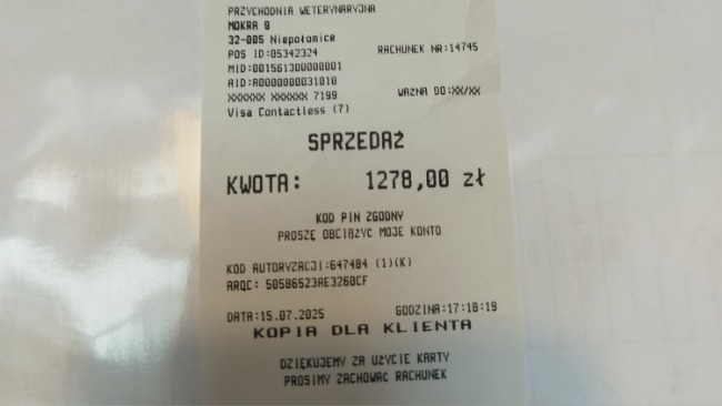 Za badania, zabieg i leczenie pozabiegowe zapłaciłam 1278 zł.