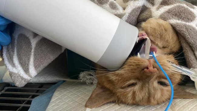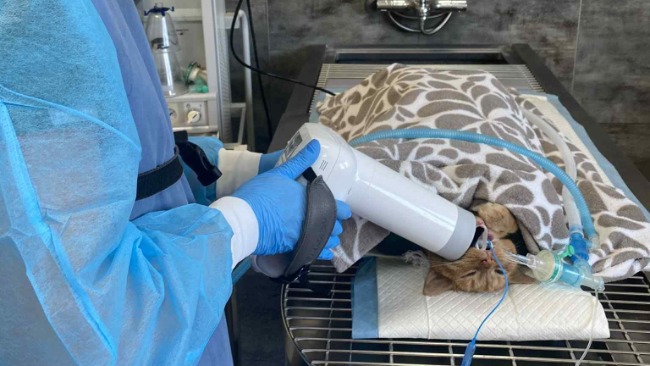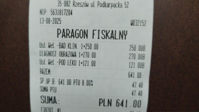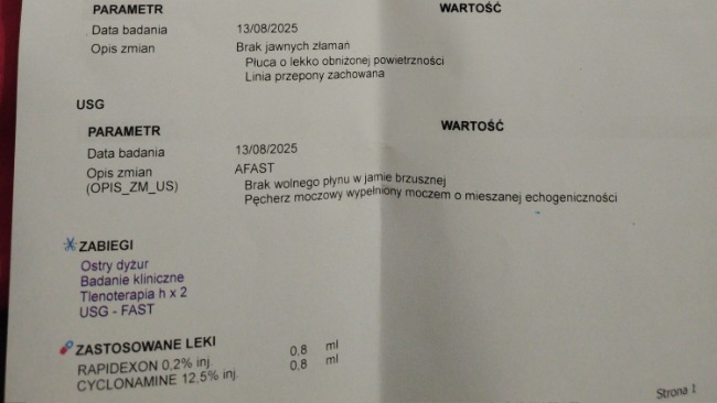 Przychodnia, w której jest szpital całodobowy, zaopatrzyła nas kompleksowo. Wykonano RTG, USG, podano steryd, włączono leczenie przeciwkrwotoczne, zaordynowano tlen. Kot był w szoku, ale się ustabilizował oddechowo po interwencji medycznej.