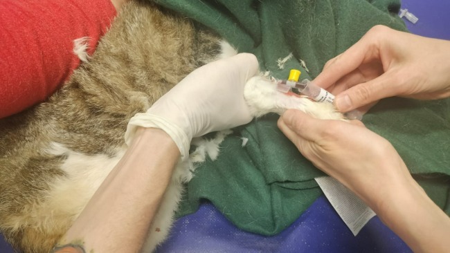 Zabraliśmy natychmiast oba koty do przychodni weterynaryjnej Krevetka w Rumi, tam zostały oczyszczone, odpchlone i odrobaczone. Zleciliśmy pobranie krwi na profil rozszerzony, przeszły również badanie USG.