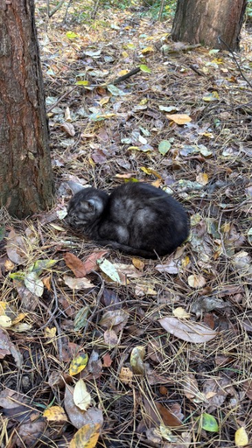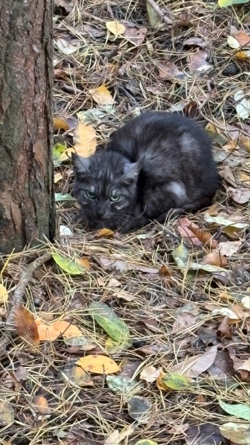 Emilia trafiła do nas pod koniec października w okolicznościach, które do dziś trudno nam zrozumieć. Została znaleziona w lesie, przy autostradzie — w miejscu, gdzie nie ma żadnych zabudowań, żadnych domów, żadnych ludzi 🌲🚗. Para, która była tam na grzybach, zauważyła pod drzewem kota. Siedział bez ruchu. Nie uciekał. Nie próbował się schować. Po prostu był — zwinięty w kłębek, nieruchomy, patrzący na nich pustym wzrokiem 💔.