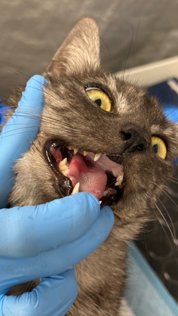 Emilia została u nas na kwarantannie. Była skrajnie zaniedbana — przeraźliwie chuda, zapchlona, zarobaczona, z dużym kamieniem nazębnym. Dostawała wszystko, czego wcześniej najwyraźniej była pozbawiona: ciepło, spokój, opiekę weterynaryjną i pełną miseczkę 🧡🍽️. Po kilku dniach zaczęła odzyskiwać siły. Powoli. Ostrożnie. Po raz pierwszy pozwoliła się pogłaskać 🤍.