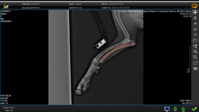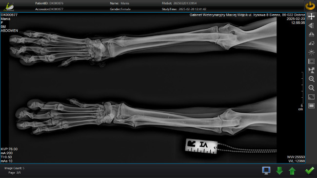 Przy standardowym RTG, gdzie sprawdzaliśmy czy nie ma dysplazji okazało się, że jej prawa łapka jest krzywa, a dodatkowo to co jest najgorsze jedna z kości przedniej prawej łapki nie rośnie. Powoduje to że druga rosnąca kość się wygina i powoduje złą pracę w stawie łokciowym i w nadgarstku. Po dwukrotnym prześwietleniu w okresie miesiąca zapadła decyzja lekarza weterynarii, że jedyną metodą aby Mania nie miała poważnych problemów w najbliższej przyszłości jest operacja przecięcia nierosnącej kości, aby druga kość mogła swobodnie urosnąć nie powodując zmian w stawie łokciowym. Musimy wykonać ten zabieg póki Mańka jeszcze rośnie, najlepiej jak najszybciej, aby nie powodować dalszych komplikacji. Jeśli nie wykonamy tego zabiegu lekarz nie wyklucza że w późniejszym etapie jej życia może dojść nawet do jej amputacji.