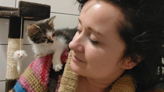 Guzik odpoczywa po wizycie u weterynarza. Nadal walczymy z zapaleniem spojówek. Tym razem zaatakowane są oba oczka :( kociak bierze probiotyki, betaglukan, azyter w kroplach oraz synergal podskórnie. To już prawie miesiąc leczenia i mamy znowu nawrót objawów. Walczymy dalej...