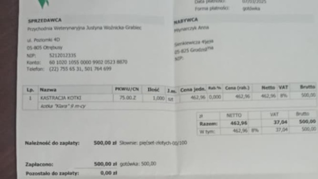 Do wszystkich ludzi wielkiego serca ! Pomoc pilnie potrzebna ! Moja koleżanka Ania od wielu lat prowadzi dom tymczasowy gdzie przygarnia głównie bezdomne koty ale też psy. Karmi, leczy i szuka domów. Teraz ma ok 20 kotów i psa. Są to głownie koty z licznymi chorobami wymagające diagnowania i lecznia. Jest też suczka Lola po parwowirozie, z nadczynnością tarczycy i padaczką. Ale też 20-letnia szara kotka, z chorymi nerkami, tarczycą i wątrobą. Ania sama nie robi zbiórek. Robi tylko bazarek gdzie sprzedaje rzeczy(rzeczy nowe) ale z tego bazarku ma ok 40-50 % wartości sprzedaży. Więc nie jest to też wiele. Dlatego zwracam się do Was , przede wszystkim moich znajomych z prośbą by Anię wspomóc, bo sama finansowo nie daje rady , a koszty utrzymania i leczenia są wielkie. Są tu koty, nerkowe, tarczycowe, ze schorzeniami neurologicznymi (potrzeby rezonans). Koszty jak się domyślacie - ogromne, więc każdemy kto wspomoże serdecznie dziękujemy: Groszek, Filip, Lola, Blusia, Kleo i inne :) aktualizacja: dziś 12.01. suczka Lola miała wizytę u neurologa (pies z padaczką) poniżej rachunek i opis.