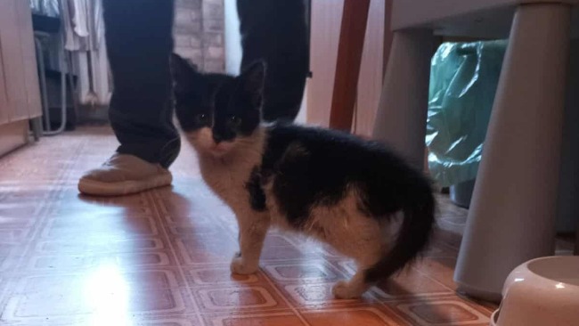 Pani, która zauważyła koteczka na szczęście nie brała pod uwagę innej opcji- zabrała go, pomimo swojej licznej zwierzęcej ferajny.