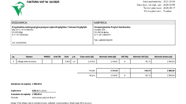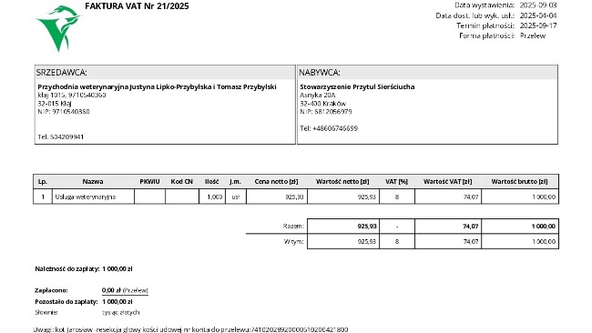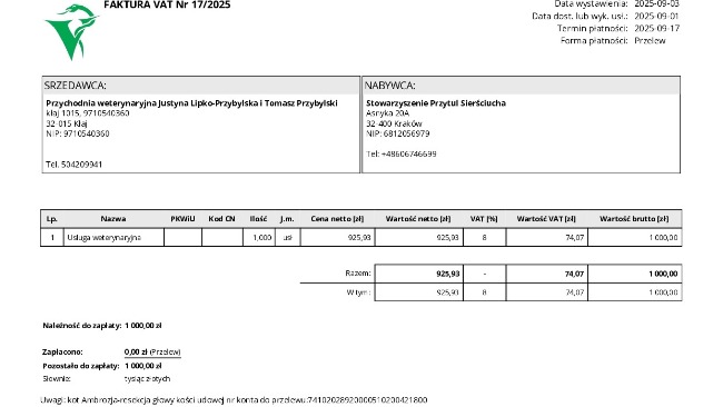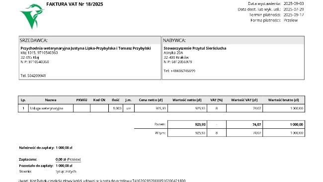 Bieżące opłaty bardzo nas martwią. Obecnie nie mamy pieniędzy na opłacenie lekarzy, a to warunek, byśmy mogli pomagać dalej.