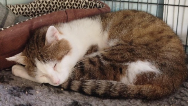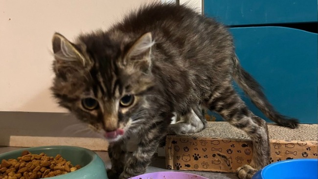 Fot. Tutuś po operacji łapki, pomału stawiał pierwsze kroki. Po zagojeniu się rany przez wiele tygodni przechodził rehabilitację.