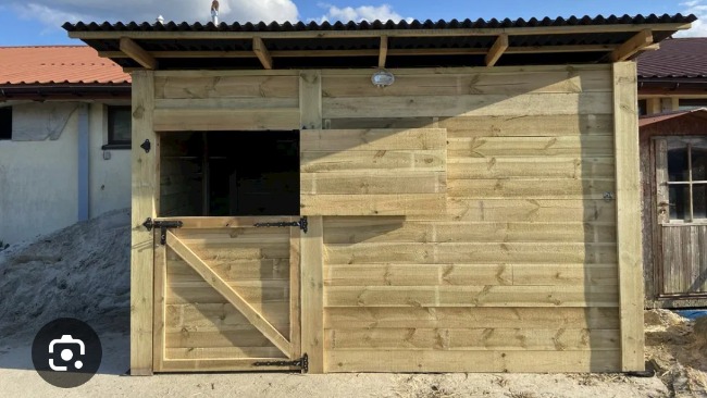 Na boks angielski- drewniane pudełko sztuk 1 z przedłużanym dachem oby mogła tam sobie kulkę siana i słomy wstawić i oby deszcz nie wysługiwał materiału. (Wstawiłam zdjęcia poglądowe, przedstawiają boksy na 2 konie, my potrzebujemy 1 boks)