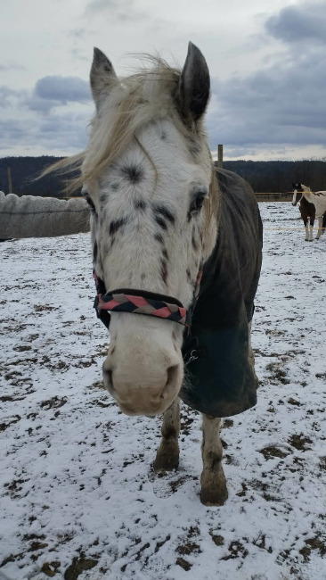 Klacz Gwiazdka trafiła pod naszą opiekę w 2010 roku, mając zaledwie 3 lata, przekazana z innej fundacji. Niestety nie miała szczęścia znaleźć stałego domu – dwukrotnie wróciła z adopcji.