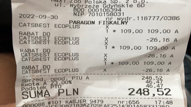 Suplementy, karma, żwir, chemia, podkłady, ręczniki papierowe, wkłady zapachowe, paliwo, eksploatacja auta ( kilka razy w roku naprawy ponieważ jeżdżę znacznie więcej niż przeciętny Polak), leki, szczepionki, strzykawki, igły, kroplówki, wlewniki, prąd i woda to koszt tysiąc złotych miesięcznie. Zużywalność drapakow znacznie większa niż w domu gdzie są dwa trzy koty. Zniszczenia w domu to kolejny kosztowny temat i część pomocy niestety.