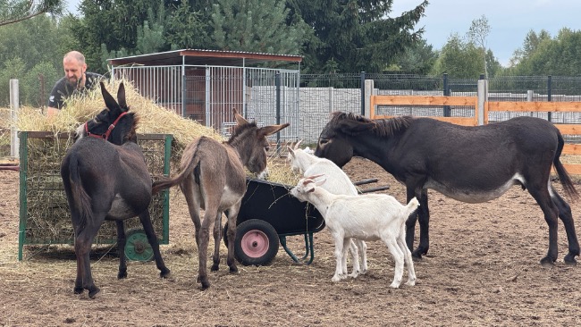 Osiołkowi stado, także 22 letnia orliczka Tosia oraz ratowane wiosna dwie kózki sierotki, odchowane w azylu na butelce.