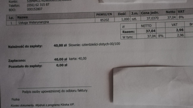 Koszt wizyty to 40 zł i mam nadzieję, że uda się tą kwotę zebrać.