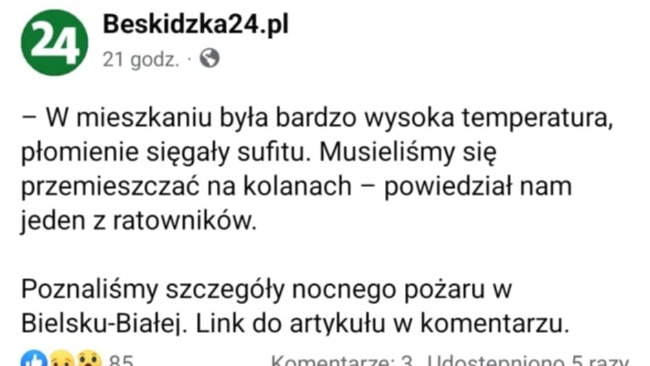 Niestety – w pierwszy dzień Świąt wybuchł pożar w mieszkaniu nad nimi.