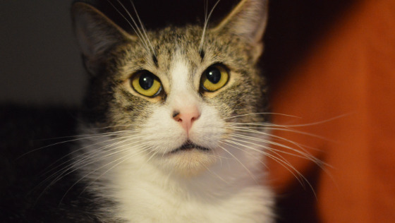 Jest kotkiem bezproblemowym, bardzo łagodnym, bezkonfliktowym, o pięknych wielkich oczach, które patrzą na nas z ogromnym, przerażającym smutkiem!
